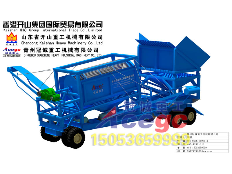 底盤框架主要由30#工字鋼組成,含12條900#輪胎。振動(dòng)料倉(cāng)篩條使用工鋼縱向間隔8CM布置,料倉(cāng)使用5mm厚鋼板焊接。滾筒篩凈篩孔長(zhǎng)度3米,內(nèi)直徑1.2米,外直徑1.5米,含污泥絞洗裝置,主框架使用15#方管焊接,料倉(cāng)使用5mm鋼板焊接。