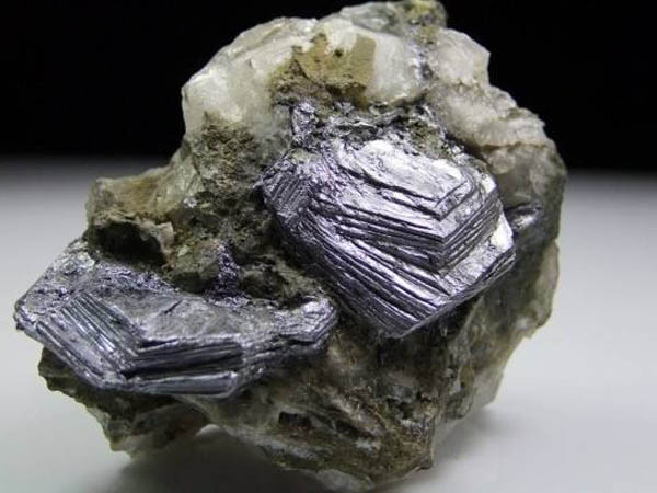 輝鉬礦存在著多型,實(shí)驗(yàn)表明,其多型的出現(xiàn)與形成溫度有關(guān),2H型的輝鉬礦形成溫度高于3R型的輝鉬礦。溫度由低到高形成非晶質(zhì)MoS2→膠體MoS2→3MoS2→2HMoS2。測溫資料說明輝鉬礦形成溫度有較寬的區(qū)間,可自相當(dāng)高溫直到相對較低的溫度,而大量形成于高至中溫階段。在熱液作用下,MoS2在較酸性條件下沉淀,即輝鉬礦在酸性條件下為穩(wěn)定,當(dāng)溶液轉(zhuǎn)向中性時(shí),鉬變?yōu)榭扇艿牧虼f酸鹽和鉬酸鹽而再活動(dòng)。在低溫和常溫條件下,Mo4+在強(qiáng)酸性還原環(huán)境中生成膠硫鉬礦(MoS2),它氧化后的產(chǎn)物是藍(lán)鉬礦(Mo3O8·nH2O)。外生作用中,鉬呈Mo6+,具較強(qiáng)的活動(dòng)性。它與鈾相似,在接近中性或偏堿性的氧化與還原的過渡環(huán)境中穩(wěn)定,由此生成多種含鈾的鉬酸鹽礦物,如鉬鈾礦[(UO2)MoO4·4H2O],鉬鈣鈾礦[Ca(UO2)3(MoO4)·(OH)2·11H2O]等。鐵鉬華[Fe2(MoO4)3·nH2O]是硫化礦石在酸性條件下(pH=3~5)形成的常見礦物。彩鉬鉛礦是含鉬的鉛鋅礦在中性條件下的產(chǎn)物。